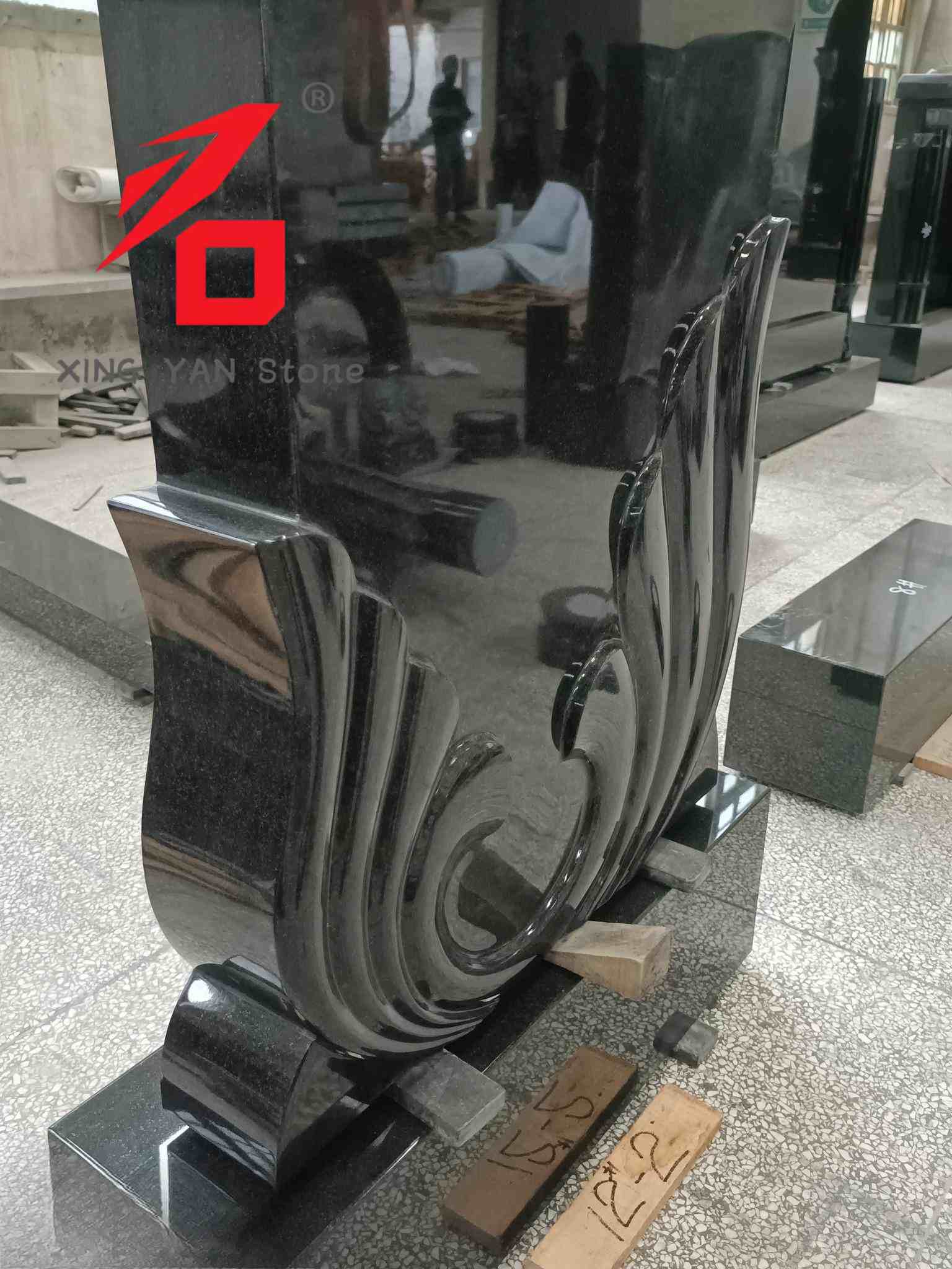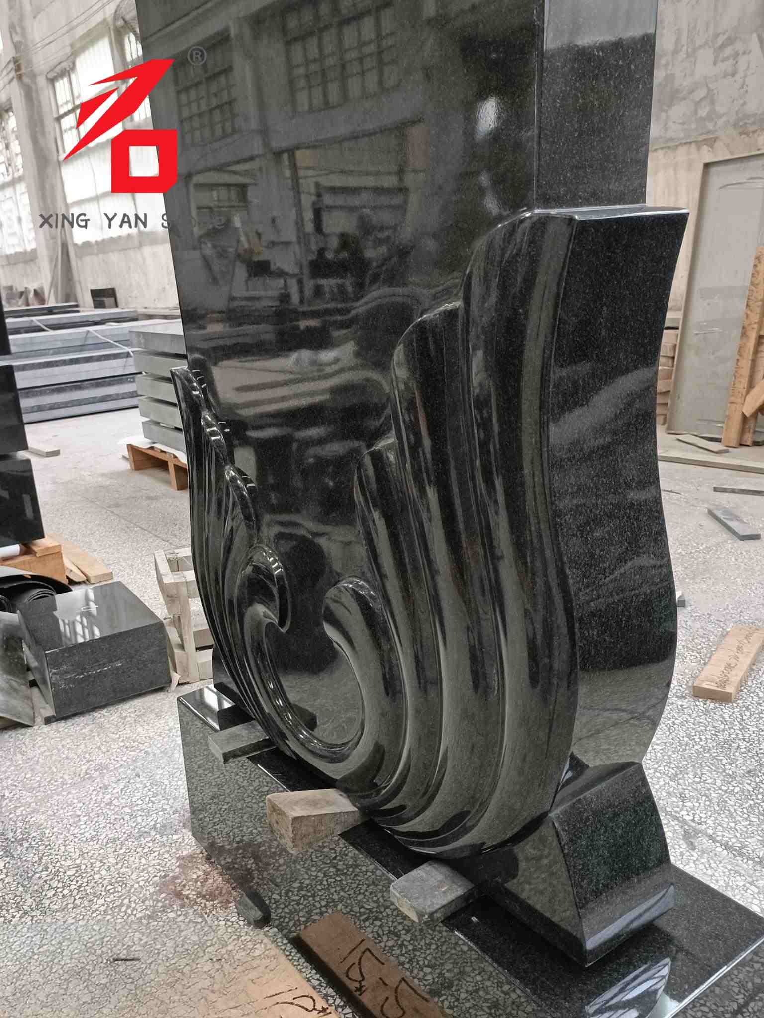 साहित्य: उच्च-गुणवत्तेच्या काळ्या ग्रॅनाइटपासून बनविलेले, दगड दाट, कठोर आणि अत्यंत तकतकीत आहे. पॉलिश केल्यानंतर, पृष्ठभाग आरशाप्रमाणे गुळगुळीत होतो, बाहेरील हवामान आणि गंज यांना दीर्घकालीन प्रतिकार प्रदान करते, समाधी दगड नेहमीप्रमाणेच नवीन राहील याची खात्री करते.