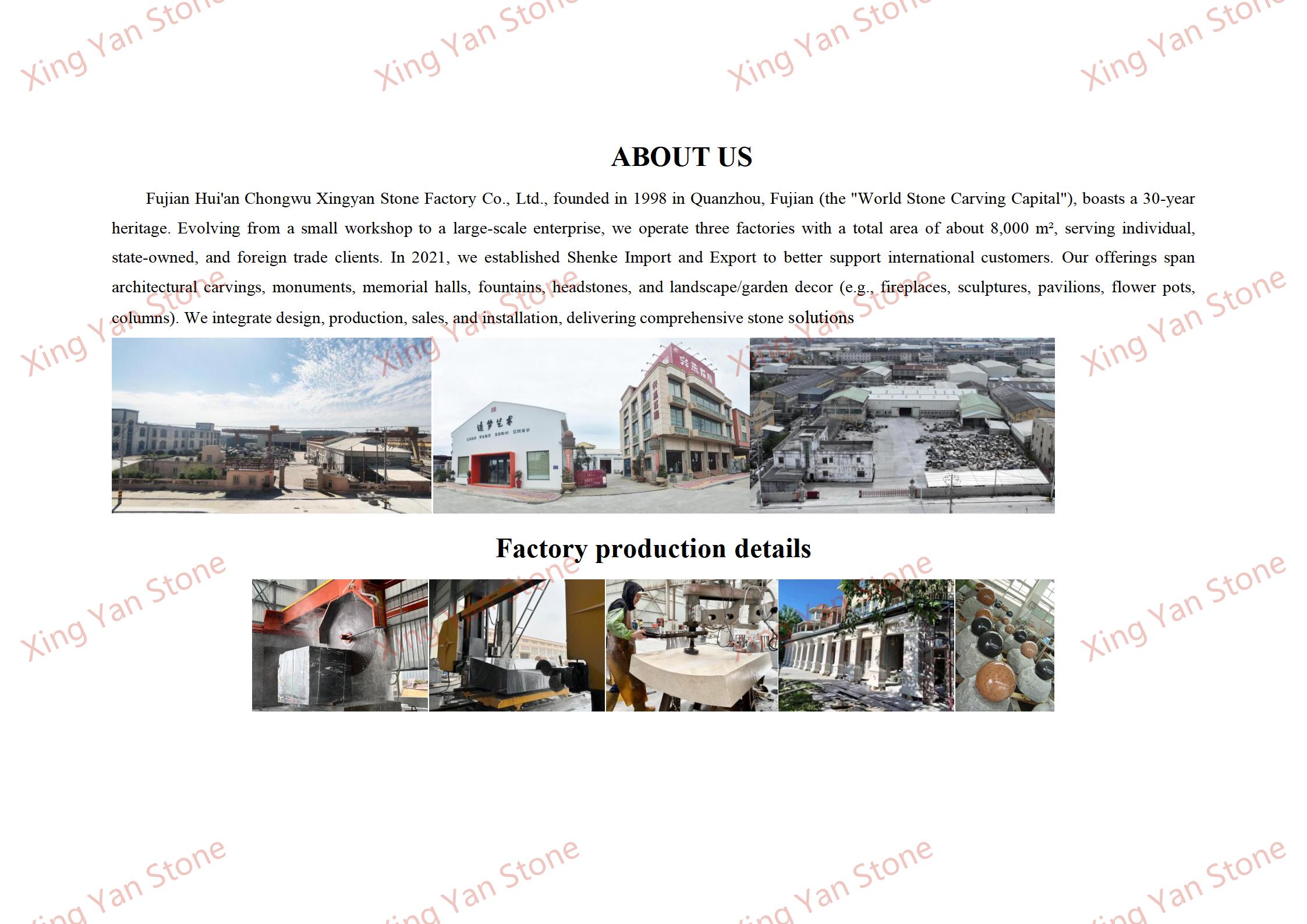 कस्टमायझेशन सेवा: आवश्यकता पूर्ण करण्यासाठी समाधीचा आकार समायोजित केला जाऊ शकतो (मानक उंची 1.2-1.8 मीटर), आणि शिलालेख जसे की नावे, जन्म आणि मृत्यूच्या तारखा आणि स्तुती जोडली जाऊ शकतात. दगडाचा रंग देखील सानुकूलित केला जाऊ शकतो;