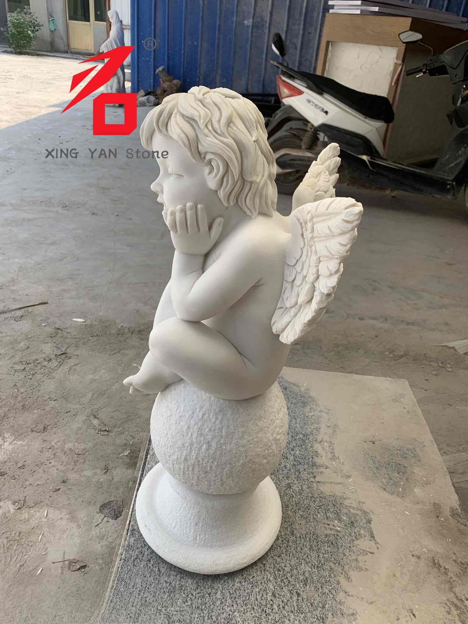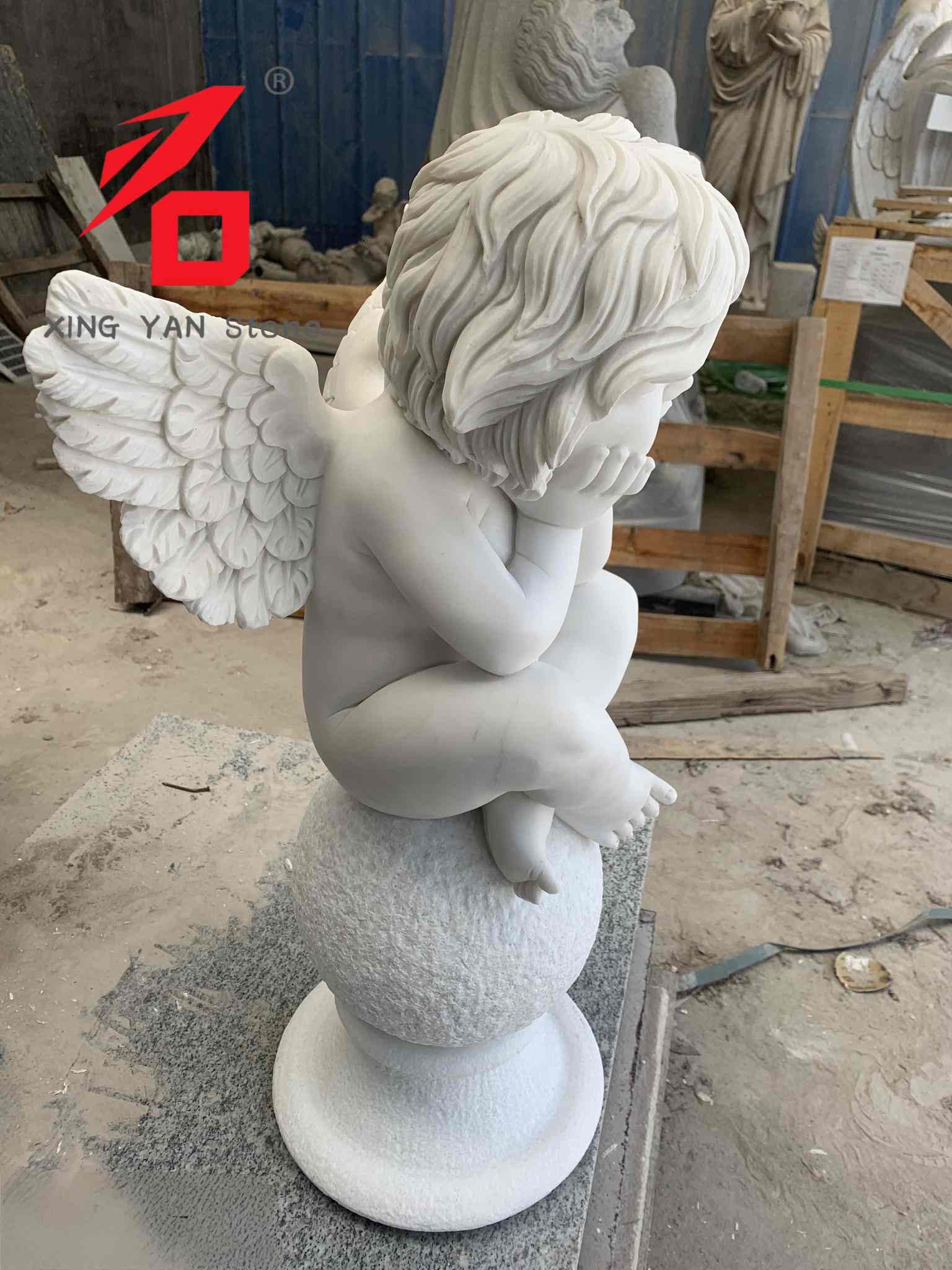 कारागिरी: पूर्णपणे हाताने कोरलेली. कारागीर देवदूताच्या चेहऱ्यावरील हावभाव, कुरळे केसांचा पोत, पंखांचे तपशील आणि शरीराची मुद्रा यांची बारकाईने शिल्प करतात. जीवनासारखा कलात्मक प्रभाव सादर करून प्रत्येक ओळ वारंवार पॉलिश केली गेली आहे.