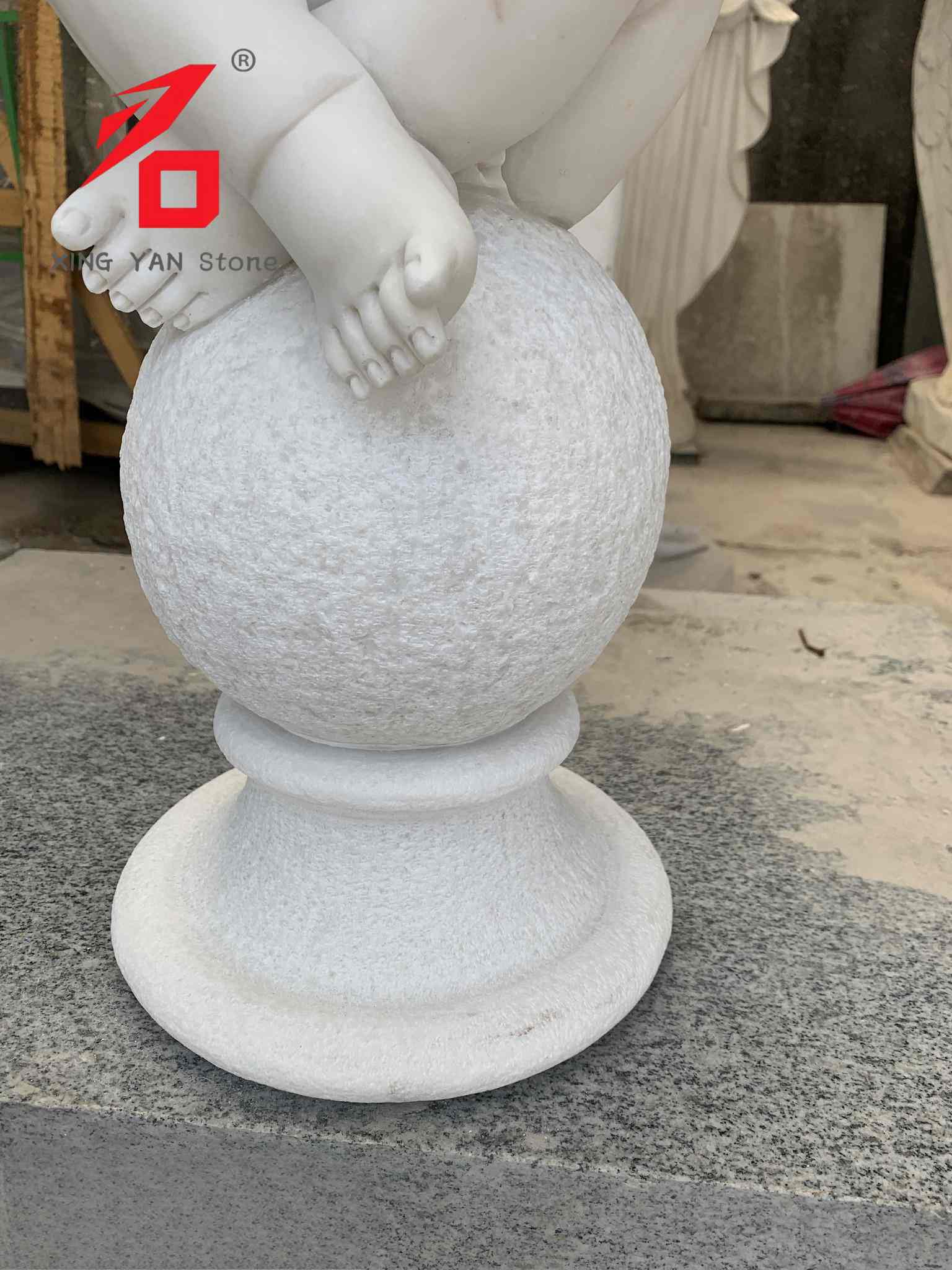 साहित्य: फुजियान प्रांतातून निवडलेले उच्च-गुणवत्तेचे पांढरे संगमरवरी. दगड शुद्ध, नाजूक, पांढरा आणि स्पर्शास उबदार आहे, मध्यम कडकपणा आणि सोपे कोरीव काम आहे, ज्यामुळे शिल्पाचा पोत आणि टिकाऊपणा सुनिश्चित होतो.